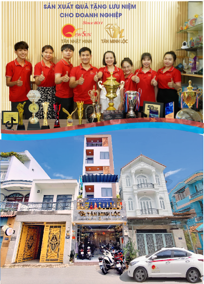 Tân Minh Lộc, Với 2 xưởng sản xuất: Kỷ niệm chương, kỷ niệm chương pha lê – thủy tinh. Hơn 15 năm nhập khẩu: Cúp vinh danh, Cúp pha lê, Cúp lưu niệm, Bảng vinh danh, Huy chương, Cúp bóng đá, Biểu trưng gỗ…