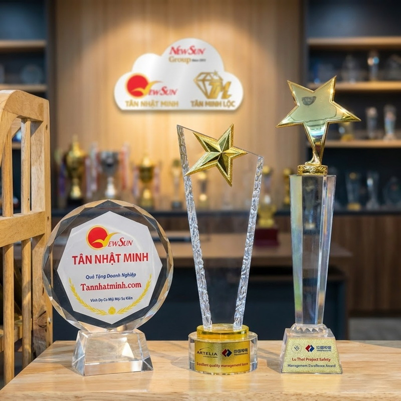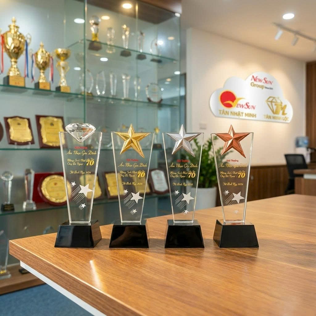 Cúp Kỷ niệm chương, Cúp pha lê Tân Minh Lộc – Uy tín, với hơn 15 năm sản xuất. 2 xưởng sản xuất, với năng lực hơn 2000SP/ ngày