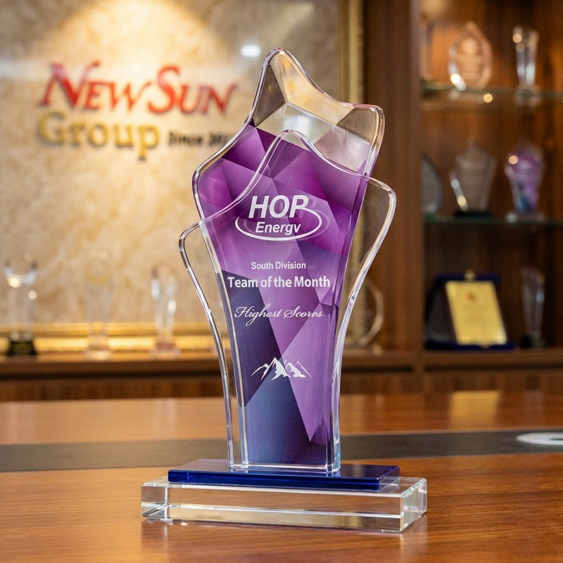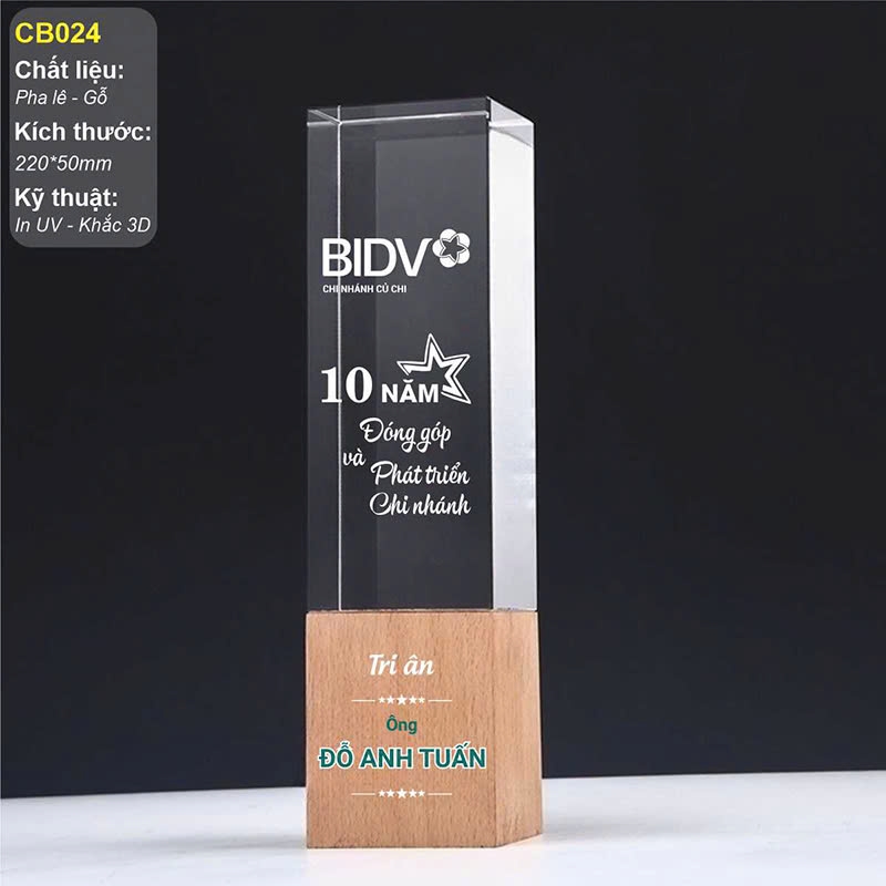 Pha lê có độ trong suốt, trong sáng rất đẹp. Phù hợp để chế tác các dòng cúp lưu niệm, dùng để tôn vinh cho: