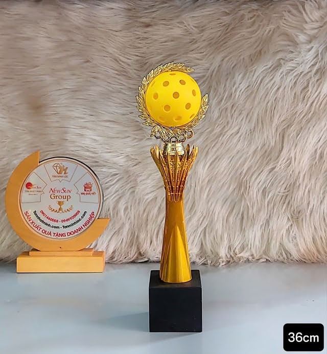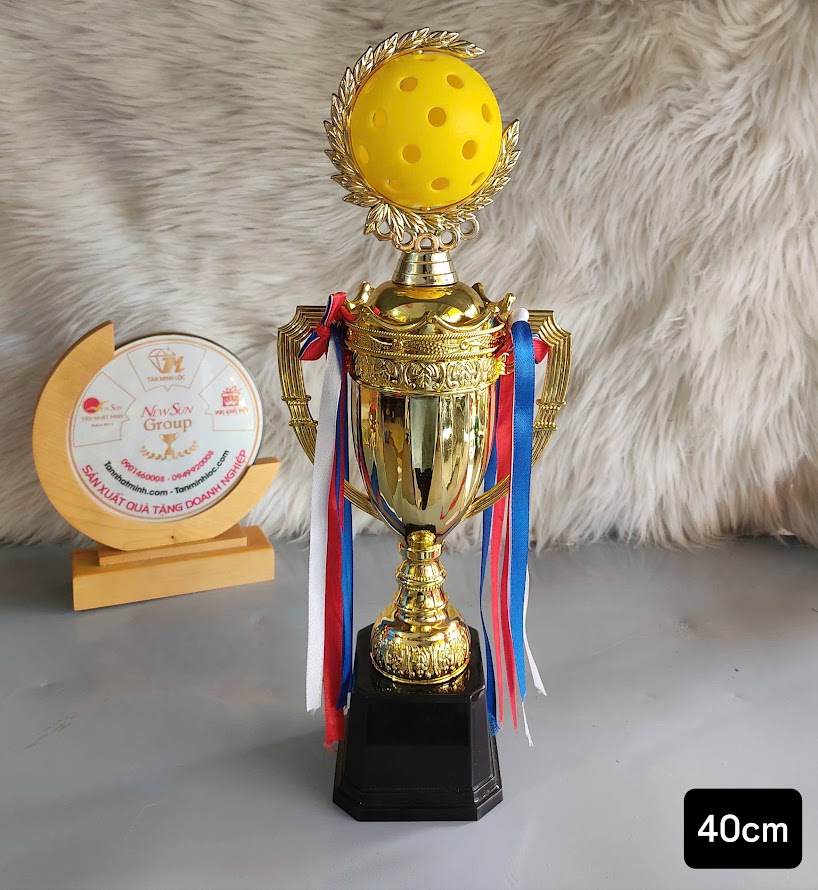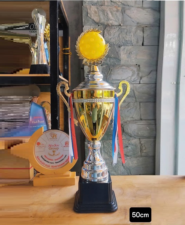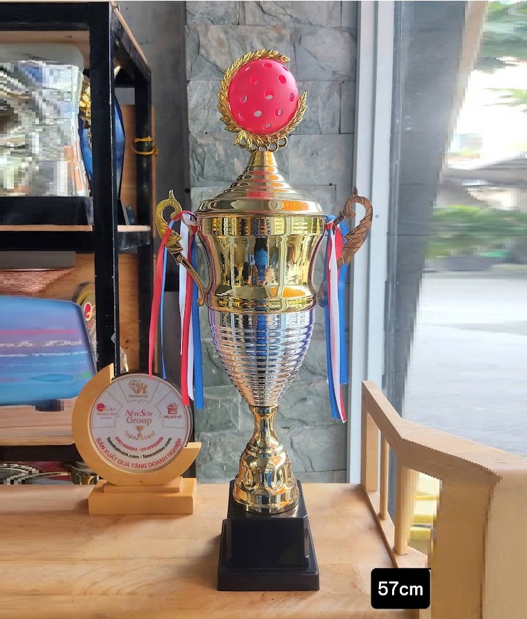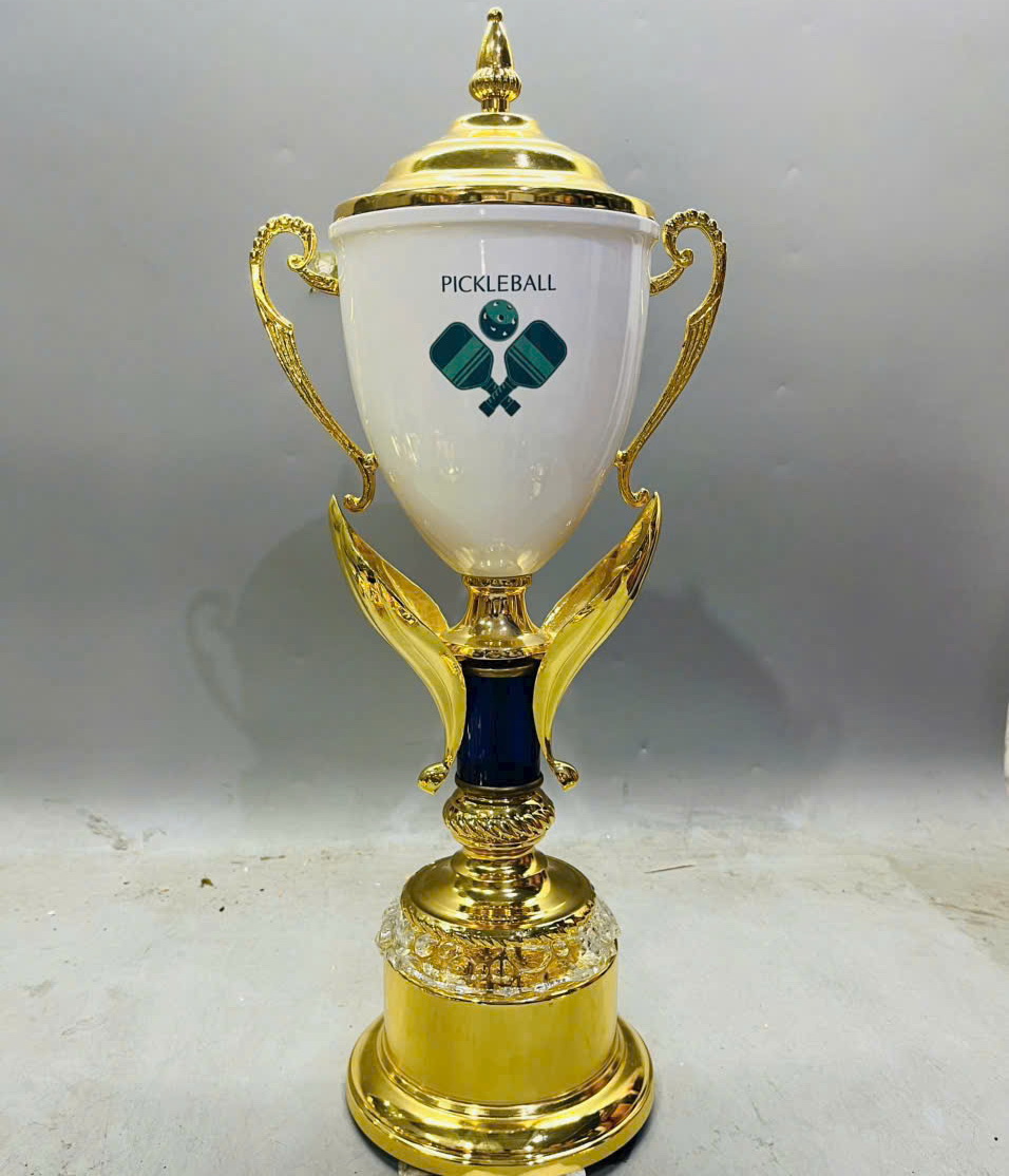Chiếc cúp trong bộ môn Pickleball thường được trao cho những vận động viên xuất sắc tại các giải đấu, là biểu tượng cho sự vươn lên và chiến thắng.