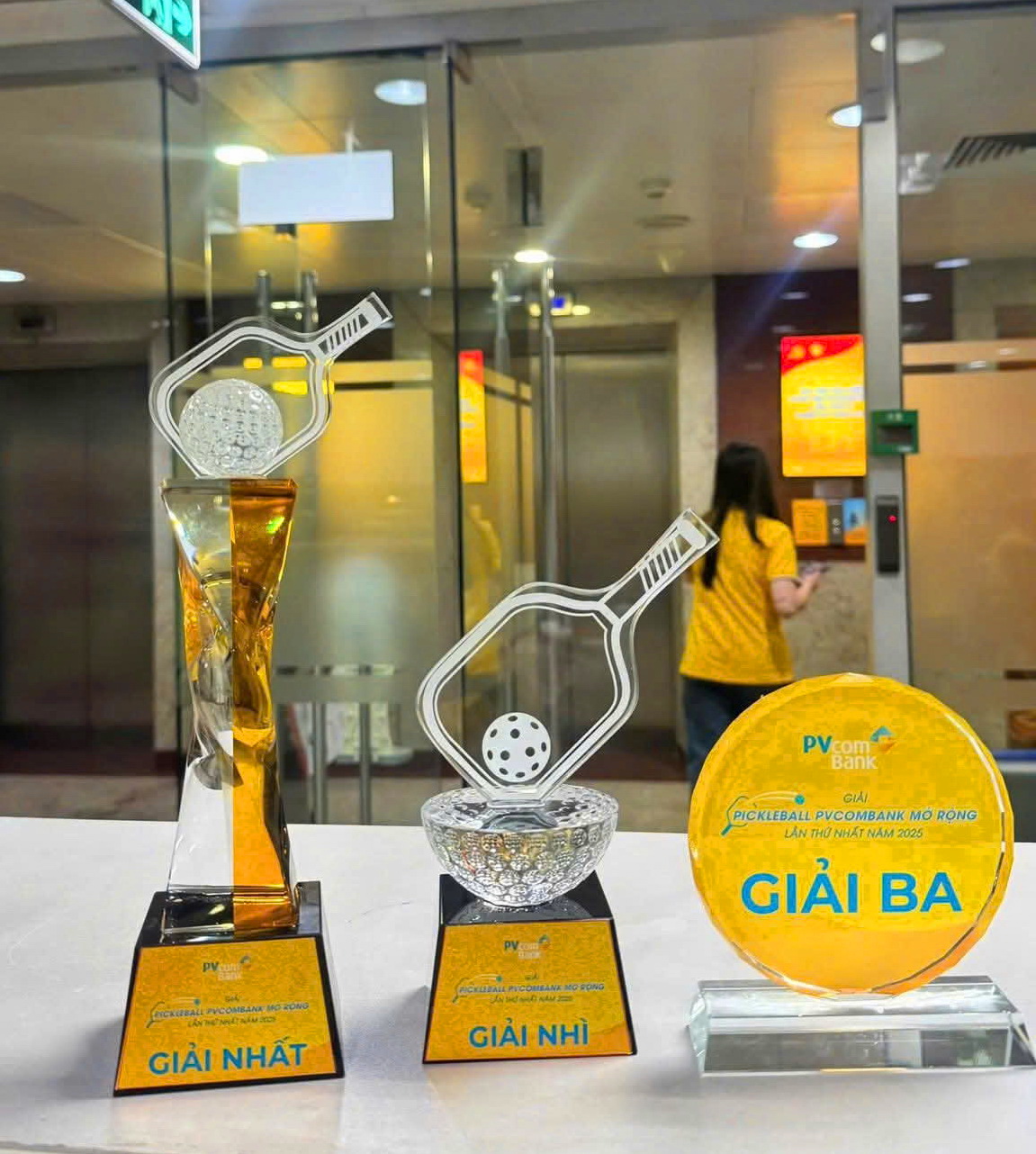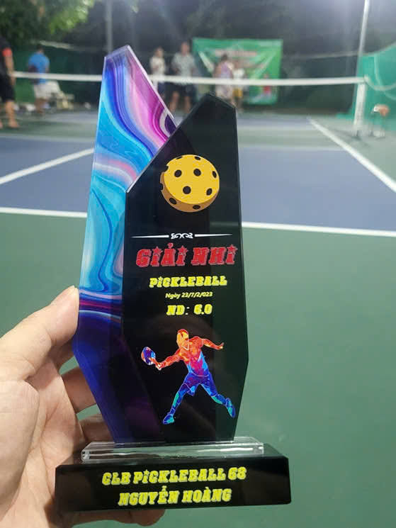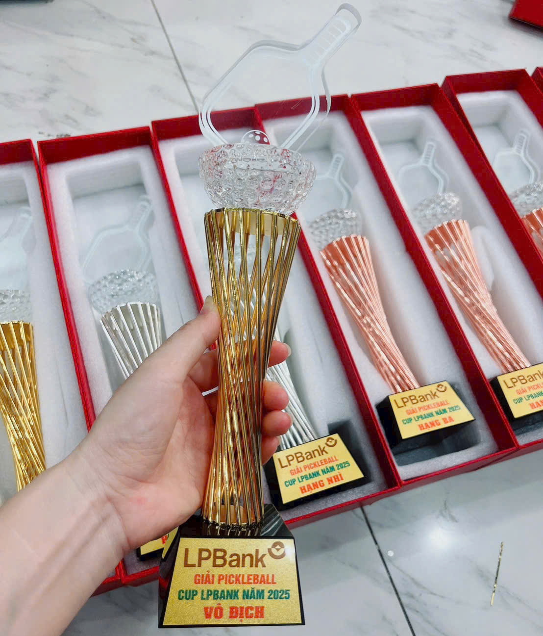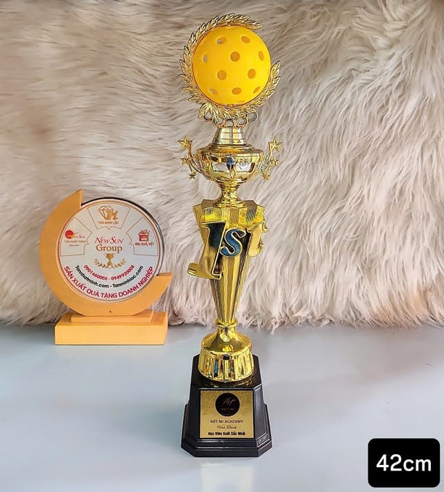 Chiếc cúp trong bộ môn Pickleball thường được trao cho những vận động viên xuất sắc tại các giải đấu, là biểu tượng cho sự vươn lên và chiến thắng.